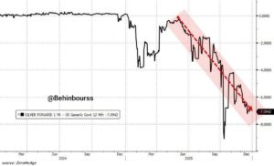 آخرین دادههای بازار نشان میدهد فاصله قیمتی میان تحویل فوری و تحویل آتی نقره بهطور غیرمنتظرهای افزایش یافته و به حدود ۷ درصد رسیده است. این وضعیت حاکی از کمبود شدید نقره فیزیکی، بهویژه در بازار لندن، است.